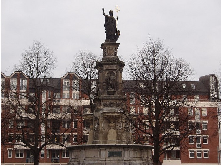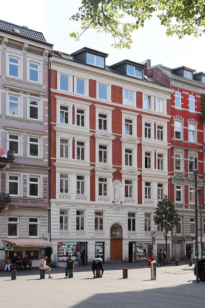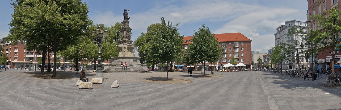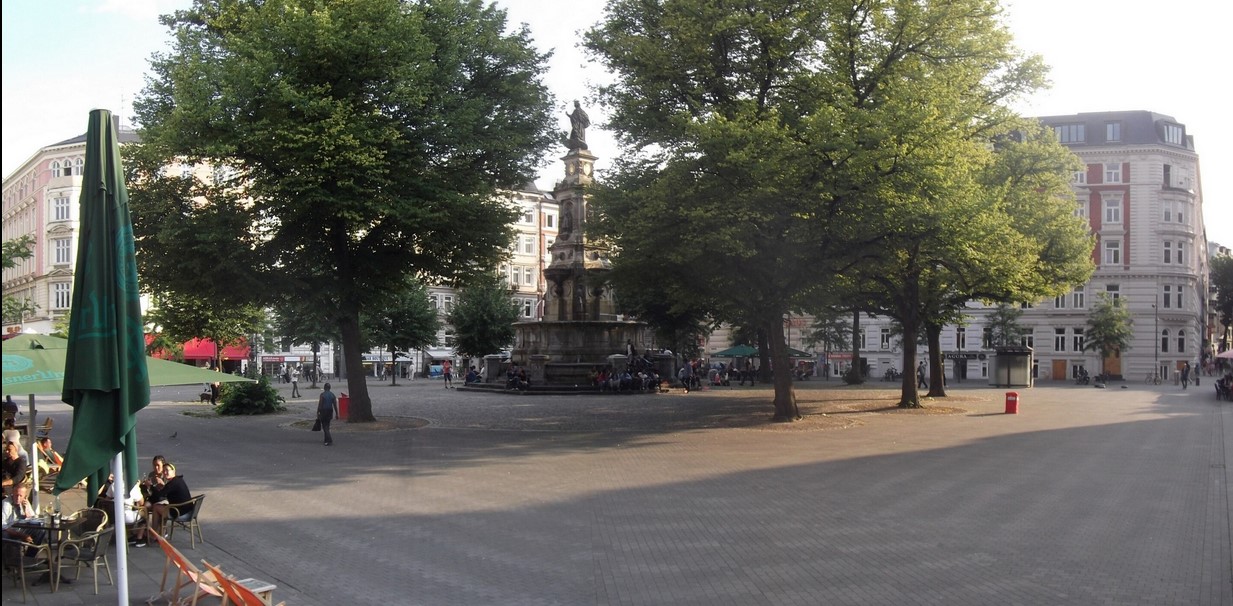 Hansaplatzbrunnenmit Häuserreihe